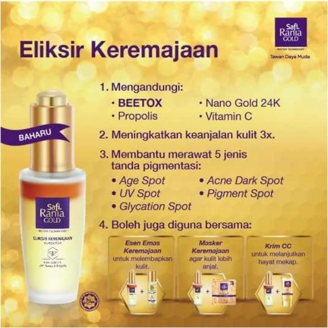 Safi Rania Gold Eliksir Keremajaan 29g Anti Pigmentation Firming X 3 Nano Gold 24k Beetox Ready Stock Shopee Malaysia